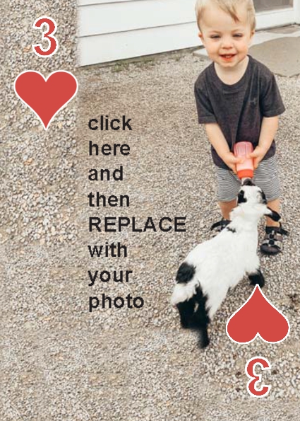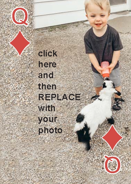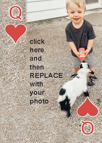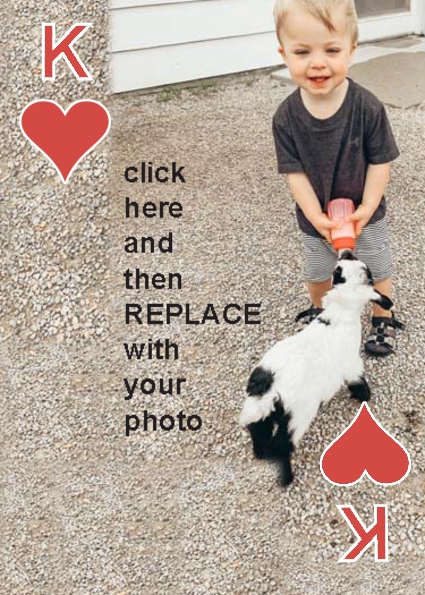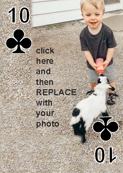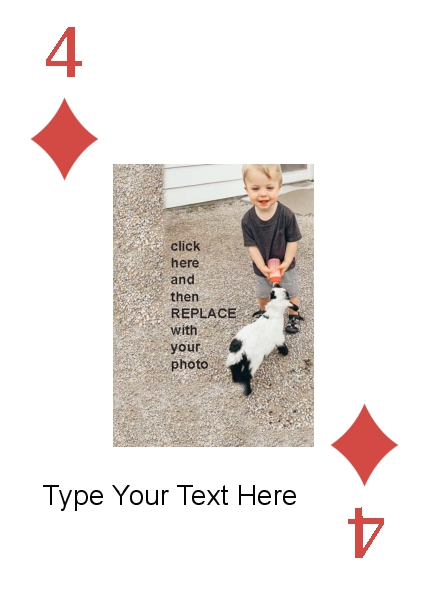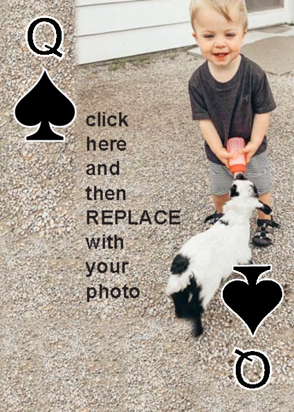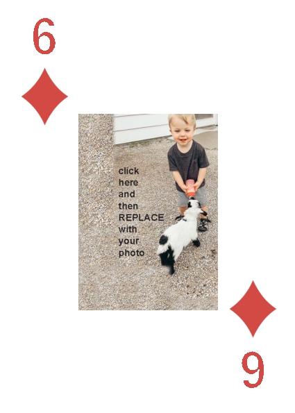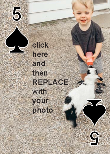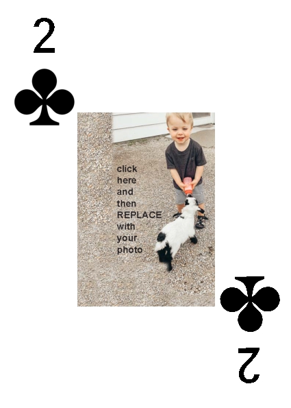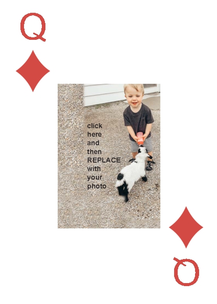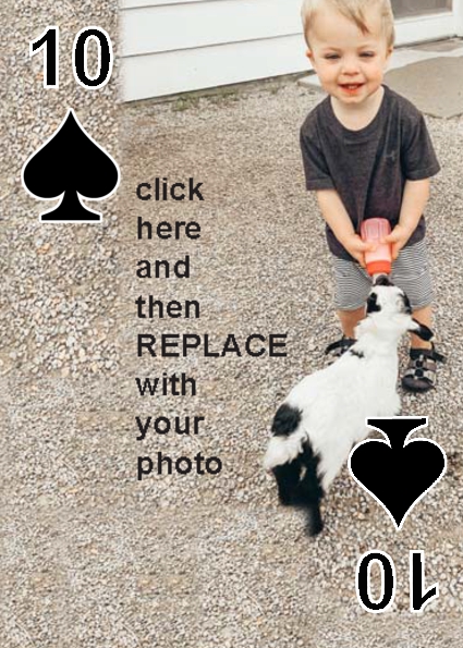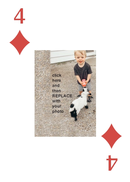 BackYou can use up to 52 photos in the playing deck. Some customers have used 4 photos, one photo per suit. Some have used 13 photos, a different photo per face card. You can do any combination you want.